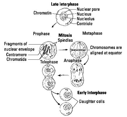 A cell enters a process of mitosis (division) in response to signals from the nucleus. As you can see in Figure 2-4, mitosis is a multistage process.