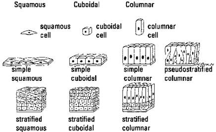 Reviewing types of epithelial tissue