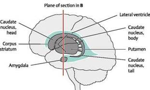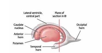 В Spatial relationships of the caudate nucleus, putamen, thalamus, and lateral ventricles