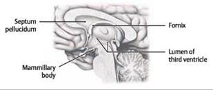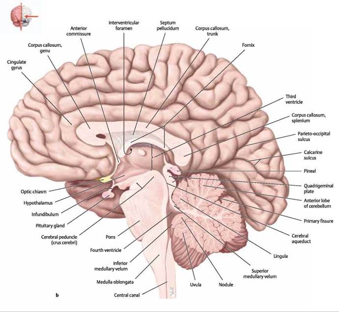 E Midsagittal section through the diencephalon and brainstem Lateral view.