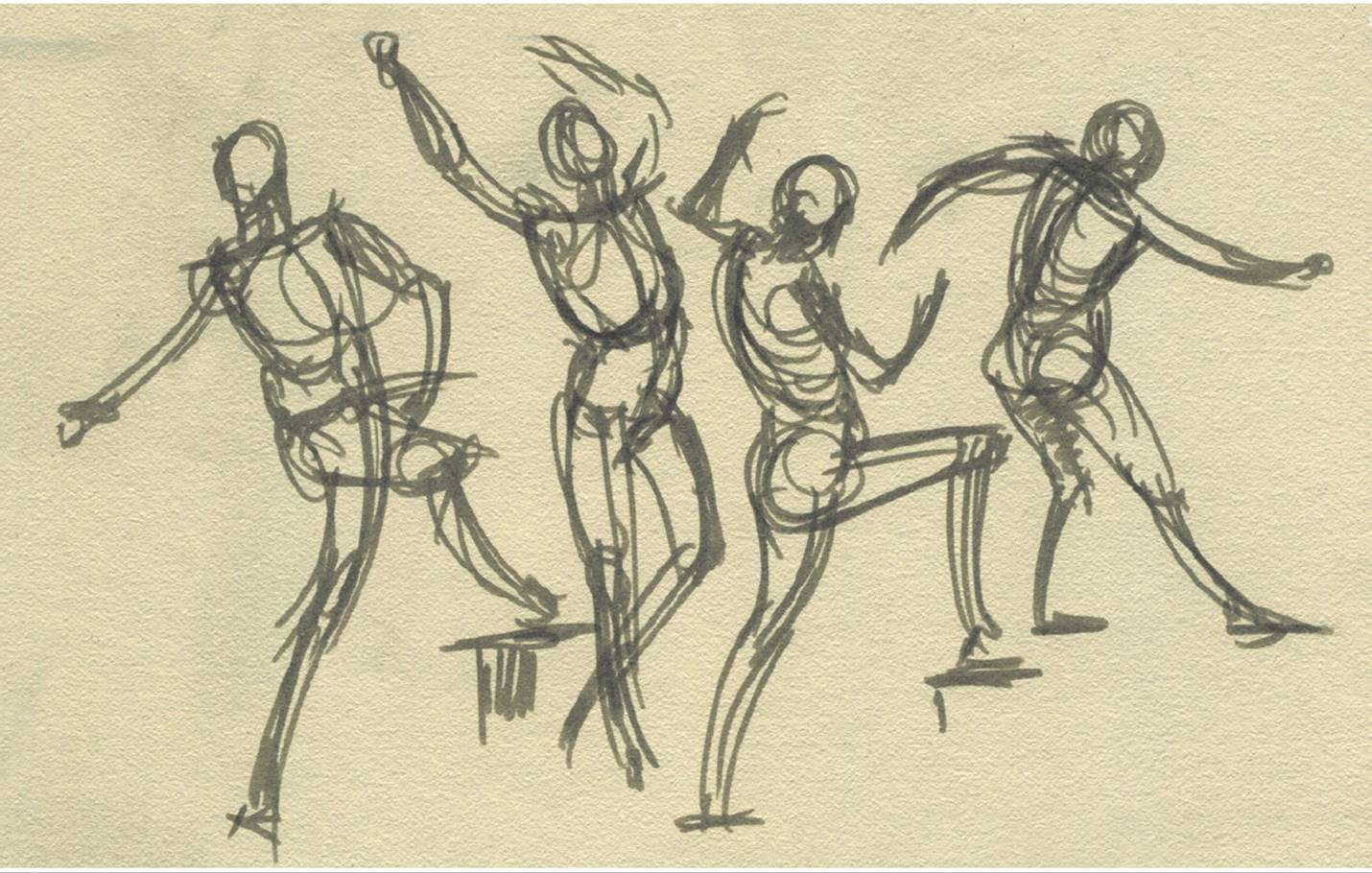GESTURE STUDY OF TWO MALE FIGURES IN DANCE POSES