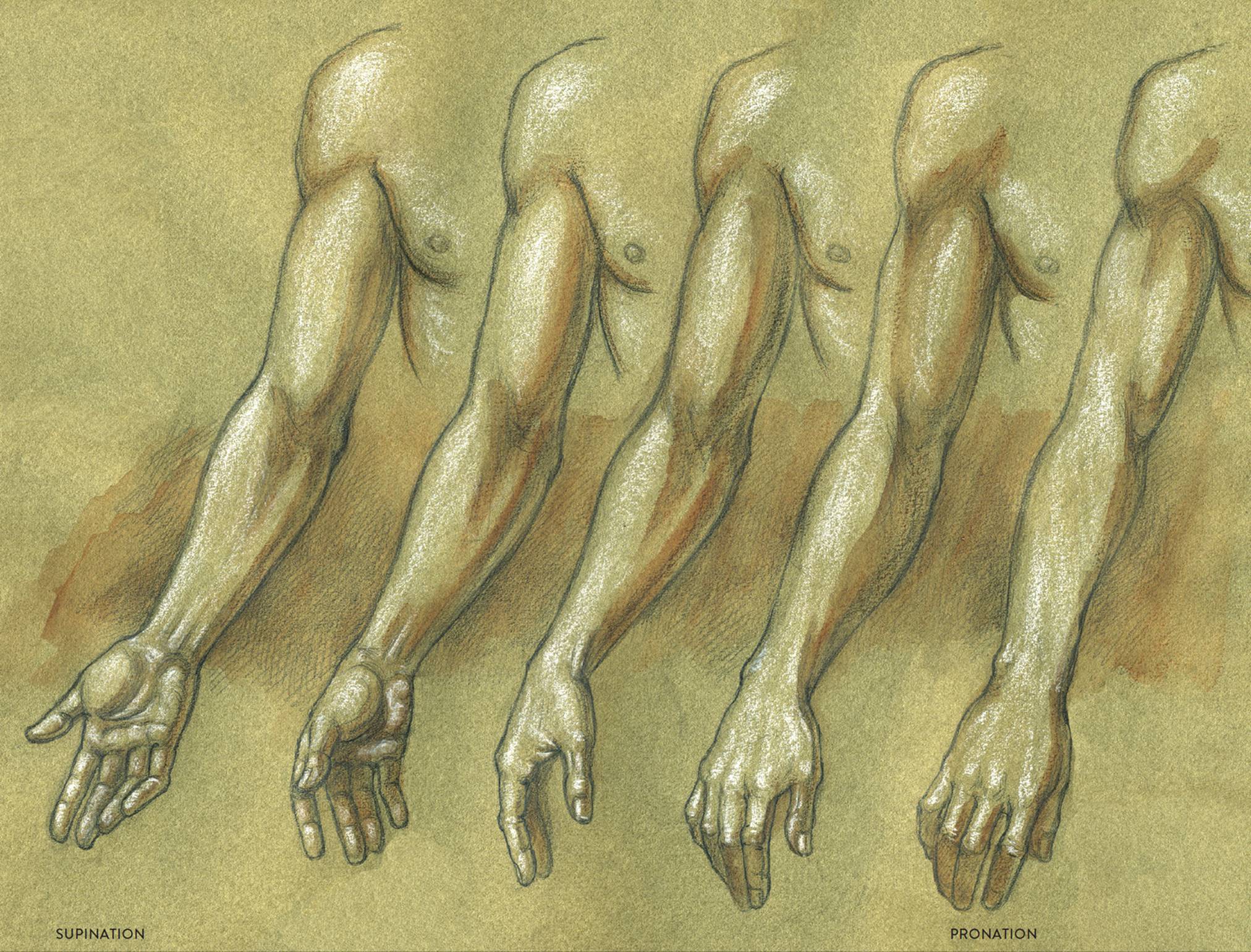 By contrast, the arms of a person with an athletic build have many well-defined muscular bulges and ridges. One potential difficulty in depicting a muscular arm has to do with the spiraling of muscle forms that occurs when the lower arm twists, which may cause confusion about what you are seeing on the surface form.