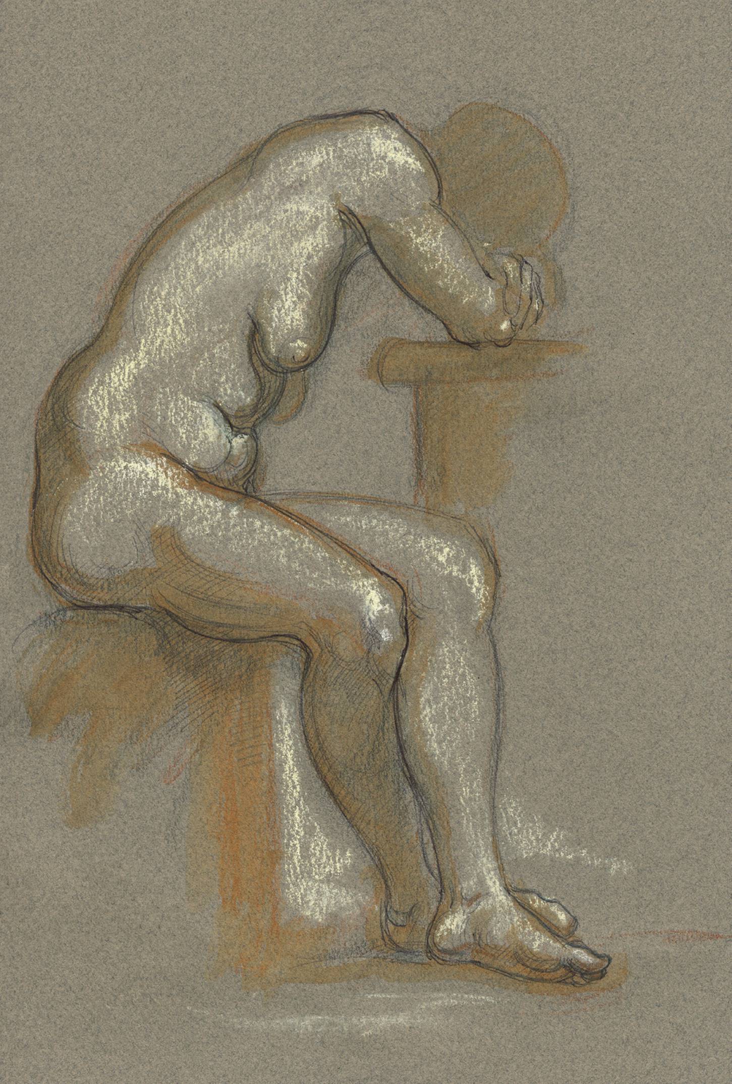 STUDY OF FEMALE FIGURE SITTING, SIDE VIEW