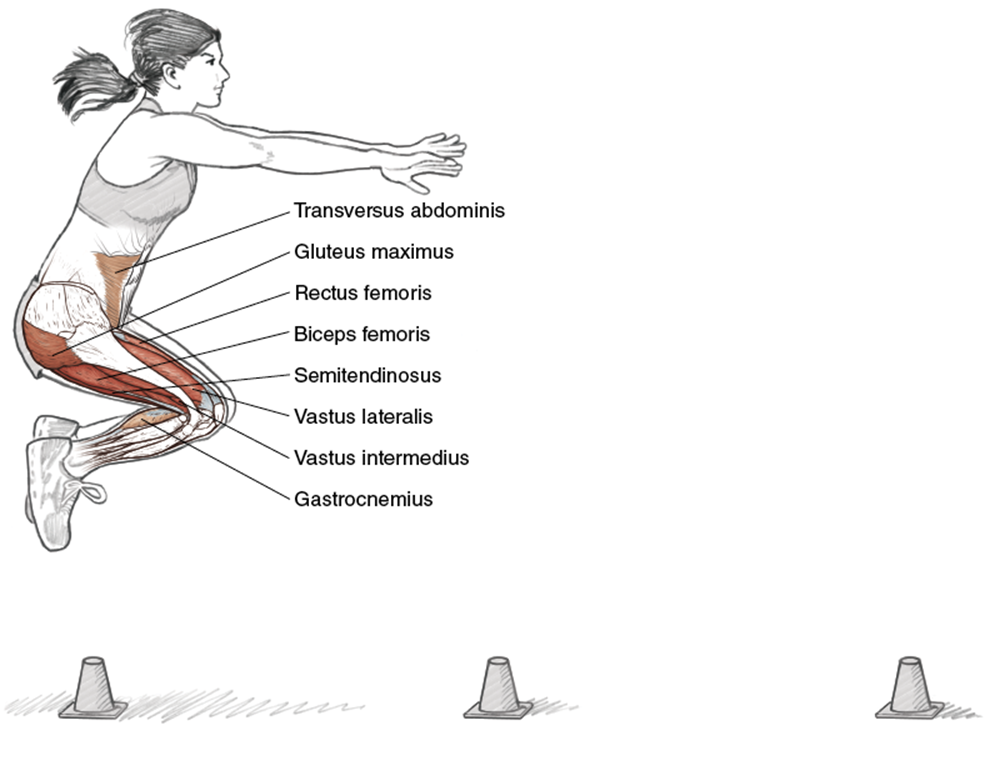 2. Stand six inches behind the first cone in a partial squat position with the arms by the sides.
