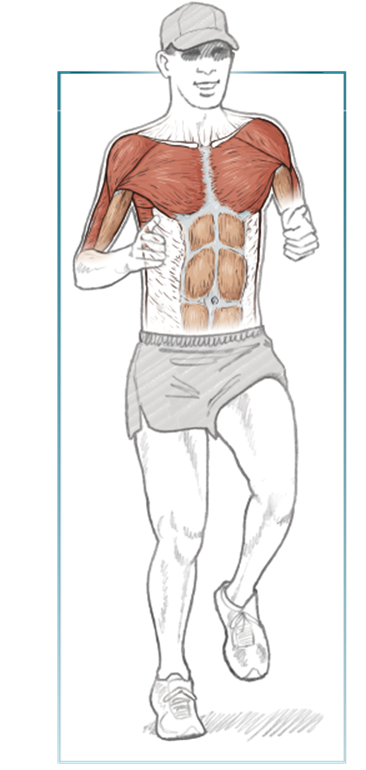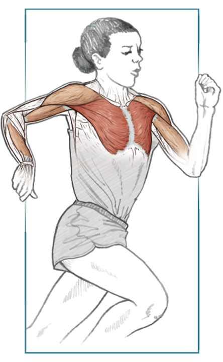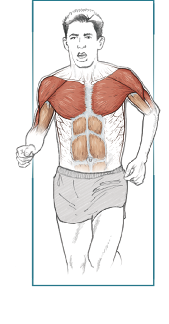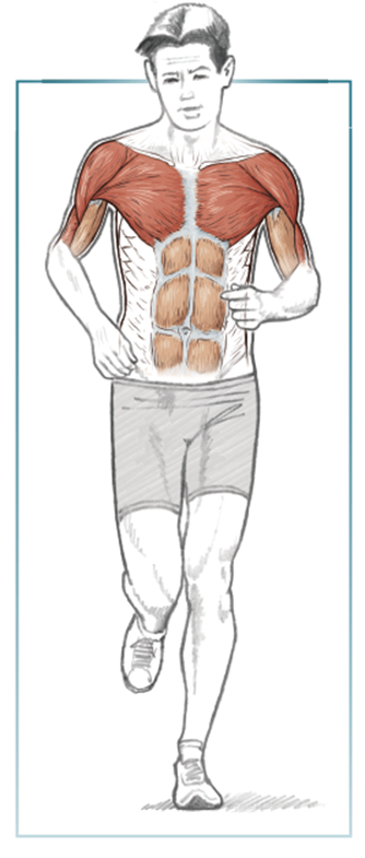 The importance of these muscles in running lies with the “weakest link” presumption—that the power of the runner is dependent not on the strength that he can produce but on which facet of his running body tires first. If the muscles of the thorax are undertrained and fatigued, they will be unable to perform their functions and so reduce the efficiency of the running action and the runner himself. If the thoracic muscles lose strength and power, not only is the breathing action compromised, but also the auxiliary actions to support the spine and aid the arm movement will be weakened, leading to an inevitable slowing.