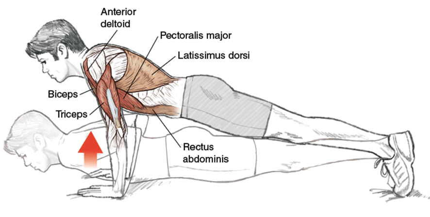 Primary: pectoralis major, triceps, anterior deltoid, serratus anterior