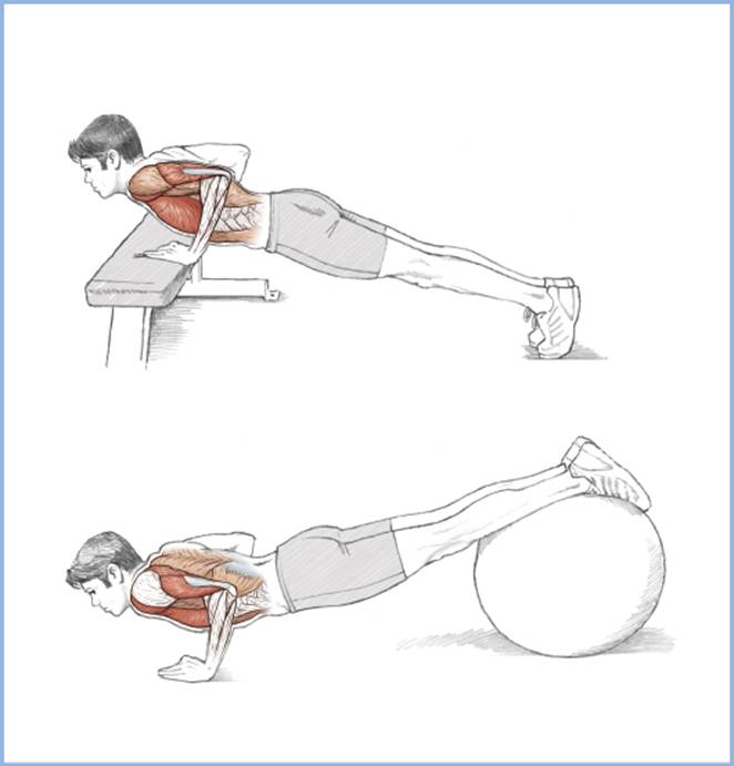 The push-up is the purest strength exercise. No machines. No weights (other than your own body weight). One fluid movement. It is not complicated unless you add variations (incline push-up and push-up on physioball), but it is a highly effective exercise for developing upper-body strength.