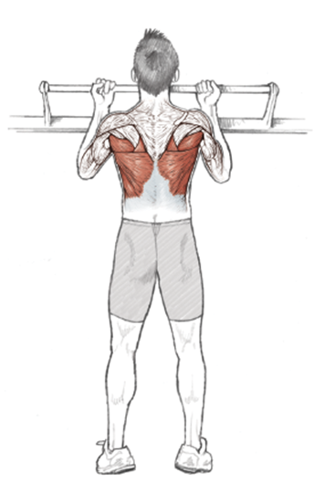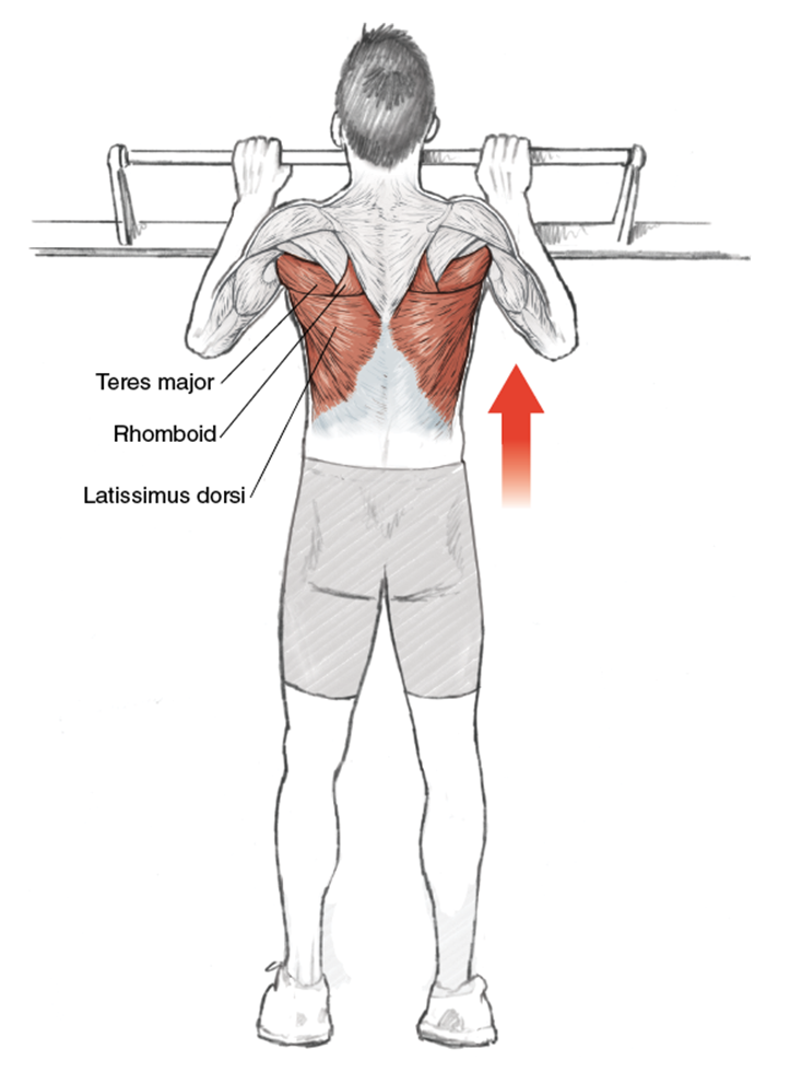 An important element of this exercise is the isolation of the upper back and shoulder muscles used. Although the abdominal group engages to stabilize the body, emphasis should be placed on the role of the latissimus dorsi, trapezius, deltoid, and biceps.