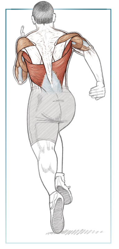 The speed not created by the normal lift of the gait cycle can be compensated for with faster turnover, but the resulting emphasis on aerobic capacity because of poor posture can have an adverse effect on performance if the athlete’s aerobic fitness is subpar. Hence, the anatomy of running plays a major role in performance despite its seemingly secondary role in fitness development. Specifically, if a large muscle group is strengthened (e.g., the pectorals through “push” exercises), the agonist muscles (in this case, those of the upper back) must be equally strengthened.