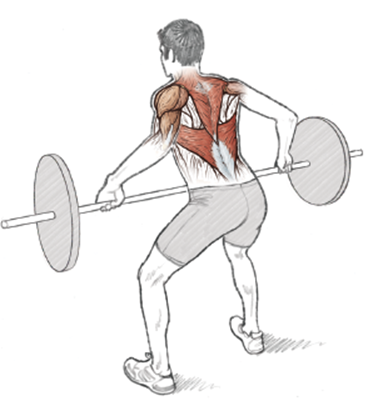 2. Pull the barbell to the chest, still in a bent position, until your elbows are bent parallel to the chest.