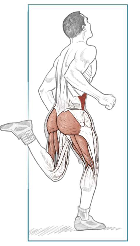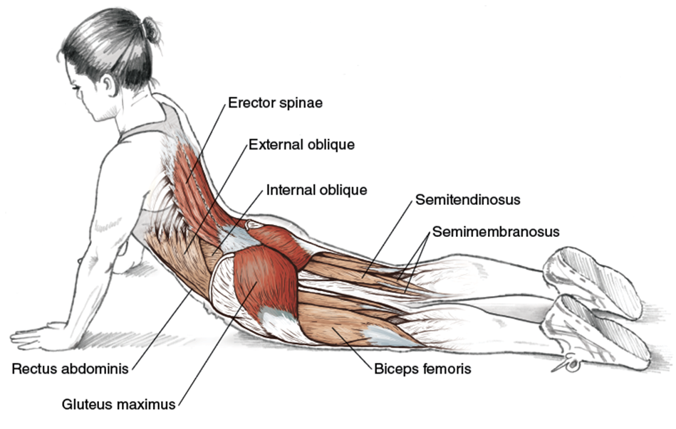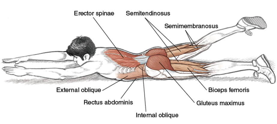 Secondary: hamstrings, rectus abdominis, external oblique, internal oblique