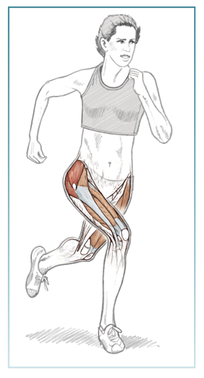 Muscles may be distinct entities, but often merge into one another and when dissected can be difficult to separate. The running action is repetitive, so that muscles with even slightly different functions may oppose each other during the running cycle and actually produce negative frictional forces. Where this may happen, a small fluid-filled sac called a bursa may form, the largest of which is over the greater trochanter, known as a trochanteric bursa. This may become inflamed and sore.