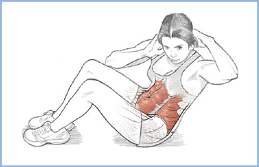 Don’t clasp, but gently touch the hands behind the head because it is easy to pull the head and torso up by using the muscles of the arms.