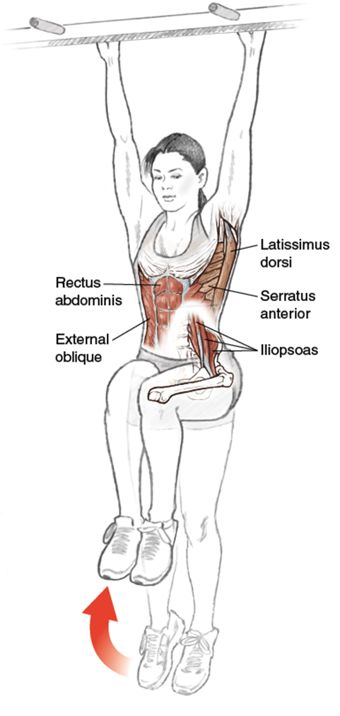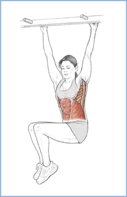 The standard hanging leg raise affects the external and internal oblique, but adding a twist to the side increases the role of these abdominal muscles that are responsible for rotation and lateral flexion of the torso. As was mentioned in the introduction to this chapter, the oblique muscles help to twist, allowing for terrain adjustments, and they aid respiration by working in conjunction with the diaphragm and ribs.