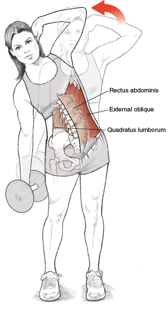 2. Bend at the waist in the direction of the hand holding the dumbbell, allowing the weight to pull the side down gradually.