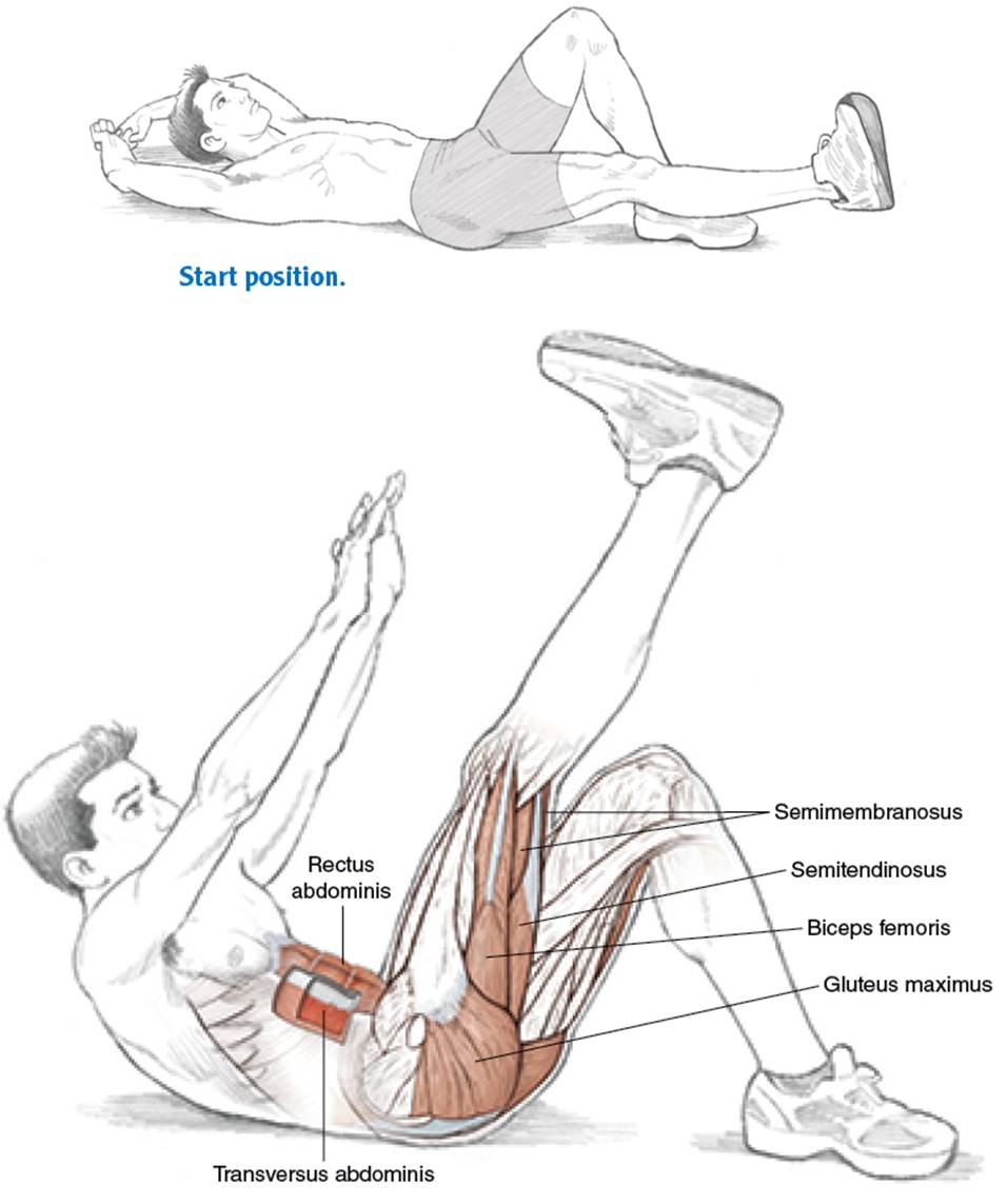 Because the quadriceps and hamstrings counterbalance each other, so do the muscles of the abdominals and lower back. To avoid muscle imbalances and potential injury, it is important to perform abdominal exercises after performing the strength-training exercises for the lower back described in the first part of this chapter. The sit-up should not be performed for speed, but in a relatively quick, fluid manner. The lowering of the torso should be done slowly, with attention to the work the abdominals are doing.