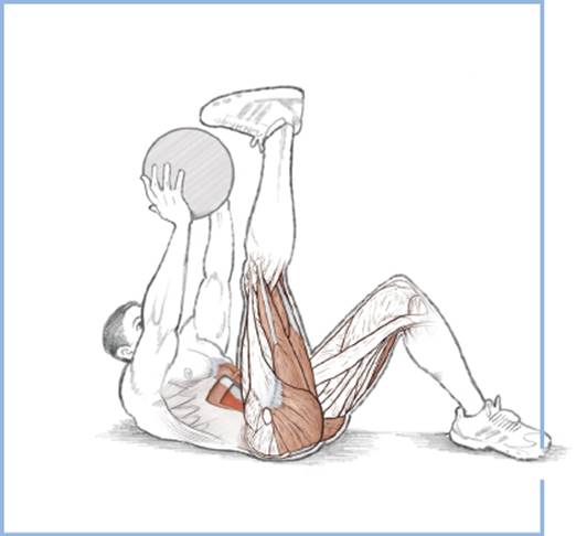 This exercise is dynamic and quickly fatigues the abdominal muscles and the iliopsoas. Because of the incorporation of both the upper body and lower body, there is more of a whole-body movement that more closely resembles a running movement than some of the other exercises in this chapter. Performed to failure, this exercise and its variation with a medicine ball can be an entire abdominal workout, especially if done as the final exercise in a strength-training session.