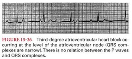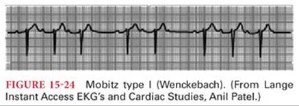 Nodal paroxysmal tachycardia resembles atrial paroxysmal tachycardia except P waves may precede, follow, or be obscured by the QRS complex (Fig. 15-36). It is common following heart surgery. Other causes include ischemia and digitalis intoxication.