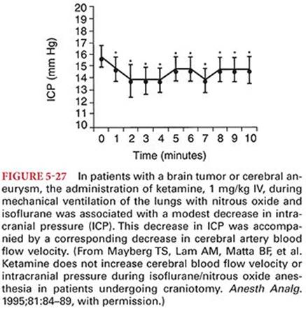 257. Mayberg TS, Lam AM, Matta BF, et al. Ketamine does not increase cerebral blood flow velocity or intracranial pressure during isoflurane/nitrous oxide anesthesia in patients undergoing craniotomy. Anesth Analg. 1995;81:84–89.