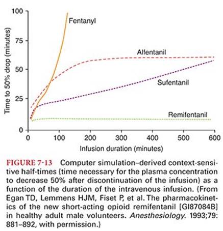 154. Kapila A, Glass PS, Jacobs JR, et al. Measured context-sensitive half-times of remifentanil and alfentanil. Anesthesiology. 1995;83(5):968–975.
