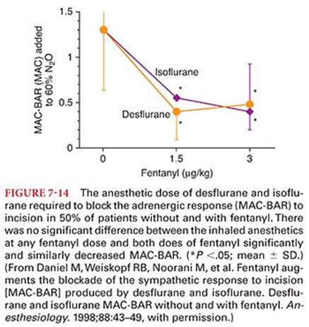 220. Sebel PS, Glass PS, Fletcher JE, et al. Reduction of the MAC of desflurane with fentanyl. Anesthesiology. 1992;76(1):52–59.