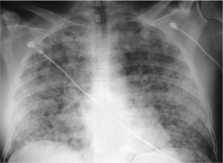 Figure 5.50 Influenza pneumonia. Diffuse bilateral airspace disease. |