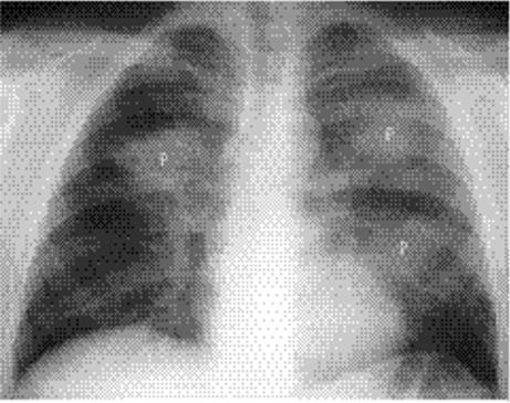 Figure 5.45 Coccidioidomycosis. Multifocal segmental airspace disease, extending out from the hila (P). |