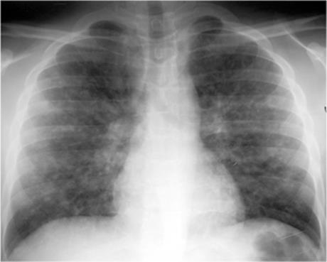 Patchy consolidation with a dependent distribution occurs with aspiration pneumonia. This is usually bilateral. Patchy upper lobe disease is suggestive of tuberculosis (TB) or histoplasmosis, especially if there is associated cavitation. Miliary opacities occur with overwhelming tuberculous or fungal infection.