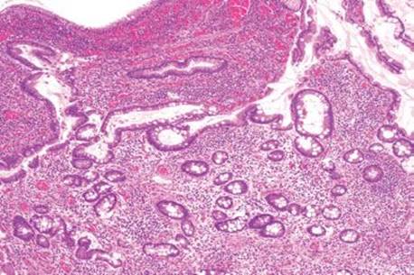 Figure 3.56 Acute ileitis pattern, backwash ileitis, ulcerative colitis. This ileal biopsy was taken from a patient with well-established ulcerative colitis.