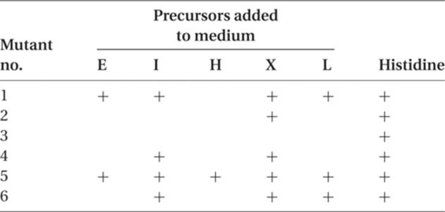 The remaining mutants, 1, 3, and 5, require both amino acids, and one explanation is that they are involved in a sequence that is common to both amino acids. Examination of the data for these mutants gives us the pathway