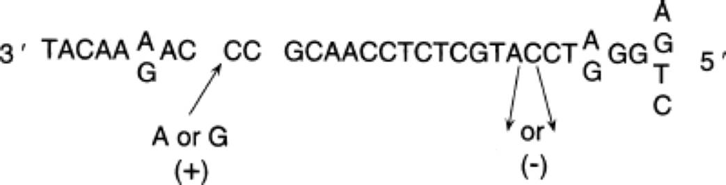 3′ . . . ACGTACGTACCAACGT . . . 5′ Template or antisense strand