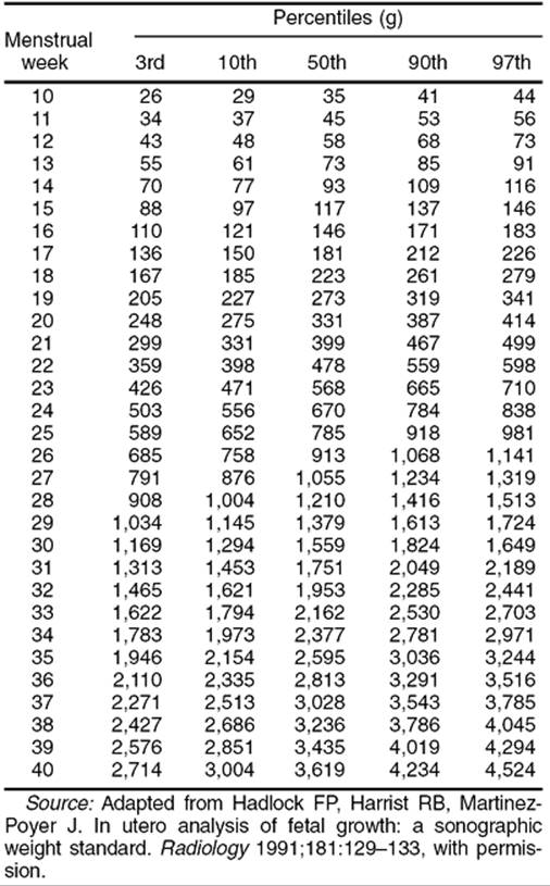 TABLE 12.1. In utero fetal weight standards at ultrasound |