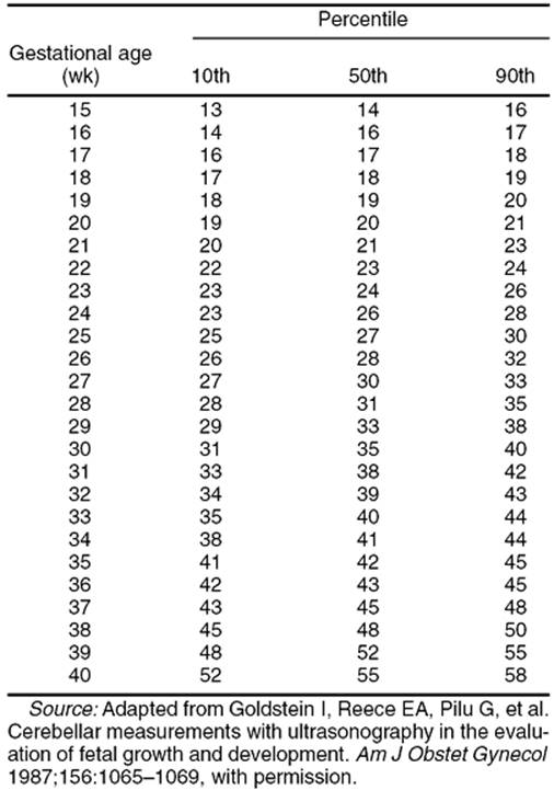 Goldstein I, Reece EA, Pilu G, et al. Cerebellar measurements with ultrasonography in the evaluation of fetal growth and development. Am J Obstet Gynecol1987;156:1065–1106.