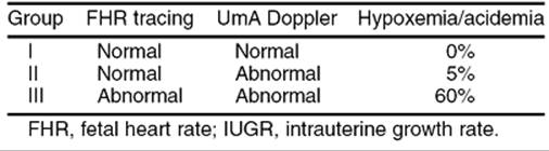 TABLE 12.4. Fetal heart tracings, umbilical artery doppler, and the IUGR fetus |