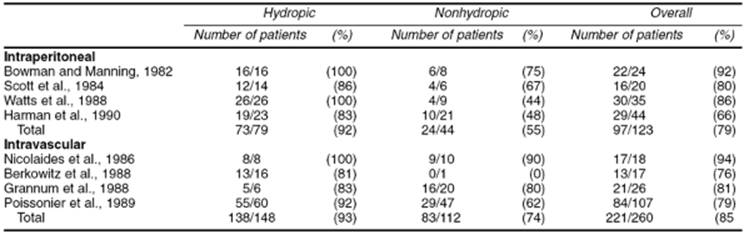 · Intravascular intrauterine transfusion is most efficacious for the treatment of severely anemic fetuses with hydrops.