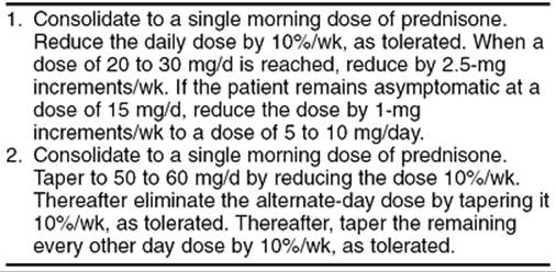 The cholinesterase inhibitors and their equivalent doses most commonly used to alleviate symptoms are 0.5 mg of intravenous neostigmine, 1.5 mg of subcutaneous neostigmine, 15 mg of oral neostigmine, 60 mg of oral pyridostigmine, and 5 mg of oral ambenonium. Drugs are adjusted to the dose at which the patient's muscle strength is optimal with a minimum of cholinergic adverse effects. Oral pyridostigmine, or a sustained-release preparation of pyridostigmine, is the most commonly used medication for MG. Overmedication results in unpleasant effects such as abdominal cramps, flatulence, diarrhea, nausea, vomiting, and excessive secretion of saliva and tears. Toxic levels of pyridostigmine lead to a myasthenic crisis-like syndrome involving profound muscle weakness and eventually respiratory failure. Treatment with high-dose glucocorticosteroids has also been used successfully in some patients. Regular rest periods with limited physical activity should be prescribed for the pregnant patient with MG. Infections should be treated aggressively because of their propensity to exacerbate MG.