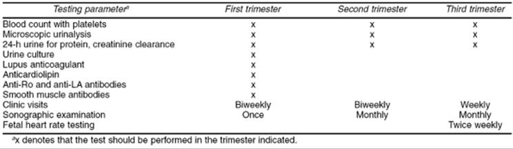 TABLE 18.8. Management of systemic lupus erythematosus during pregnancy |