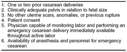 TABLE 24.3. Criteria for vaginal birth after cesarean |