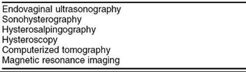 The proximity of the leiomyomata to the endometrial cavity usually can be demonstrated by taking advantage of the acoustic differences between normal myometrium, fibroid tumors, and the endometrial cavity. The endometrial stripe is a reliable marker of the endometrial cavity, and a smooth continuous endometrial stripe with normal underlying myometrium between the cavity and any fibroids suggests that palpably detectable fibroids are primarily in a subserosal location. Simultaneously injecting saline into the endometrial cavity while performing an endovaginal ultrasonographic examination (sonohysterography) improves the delineation of submucous and intracavitary leiomyomata. However, it is not possible to distinguish an endometrial polyp from an intracavitary myoma with any imaging technology.