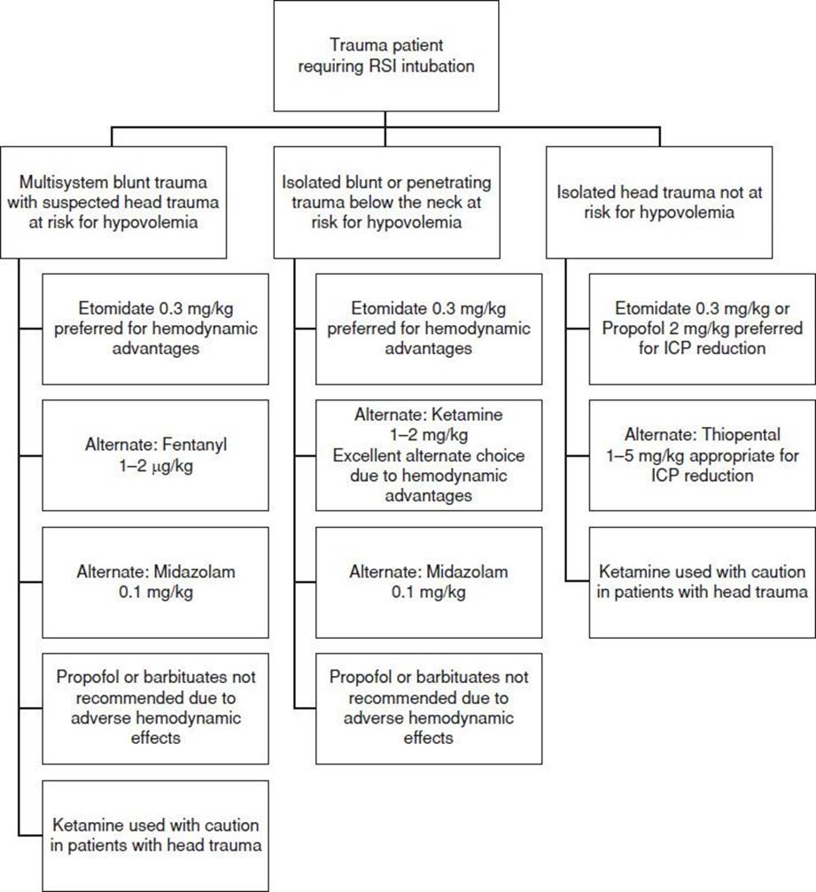 FIGURE 19.1 Algorithm for selection of induction agent in trauma airway management with preferred induction agent and alternate choices.