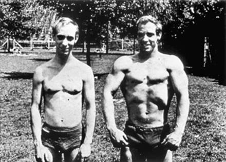 By the same token, should it really surprise anyone to see the picture of identical twins below? Otto (left) and Ewald (right), age twenty-three, had trained intensively for different athletic advantages—Otto as a long-distance runner, and Ewald for strength events.