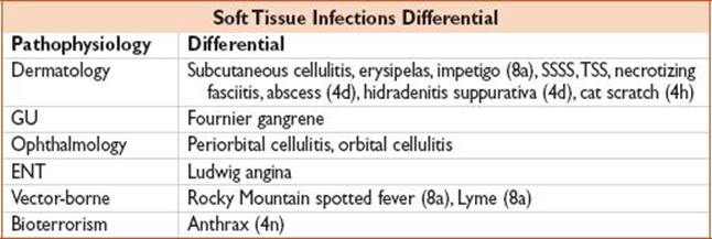• Fever, chills, systemic sxs (tachycardia, ↓ BP), ± crepitus, drainage