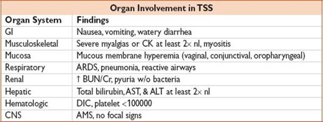 • Caused by inflammatory response to TSST-1 enterotoxin from Strep & Staph species