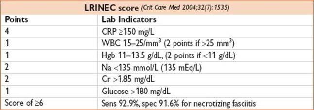 • Deep-space infection is often vastly greater than skin involvement would suggest