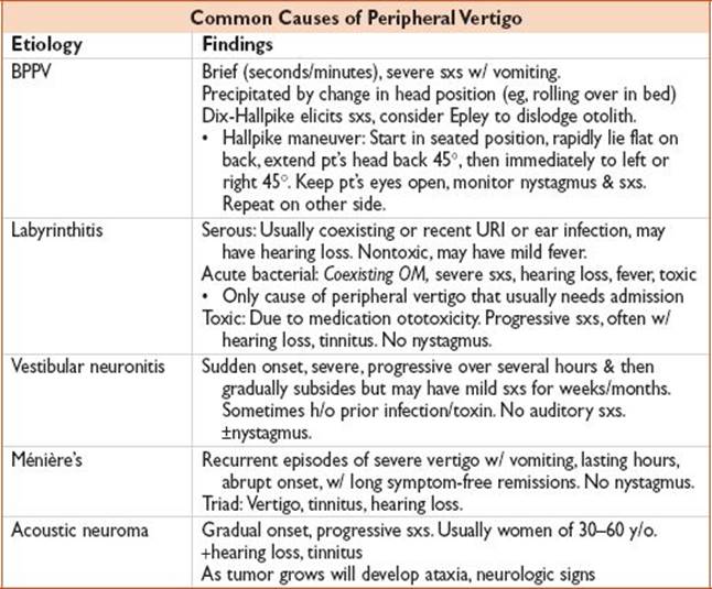 • Admit if vertigo refractory to ED tx or acute bacterial labyrinthitis