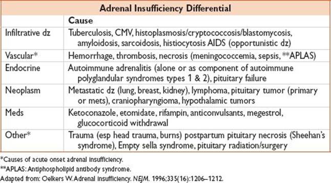 • Acute adrenal insufficiency should be suspected in the presence of fluid & pressor-refractory hypotension, esp in a pt w/ signs & sxs as noted above