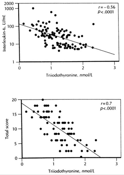 72. Moordian AD, Reed RL, Osterweil D, et al. Decreased serum triiodothyronine is associated with increased concentrations of tumor necrosis factor. J Clin Endocrinol Metab 1990;71:1239.
