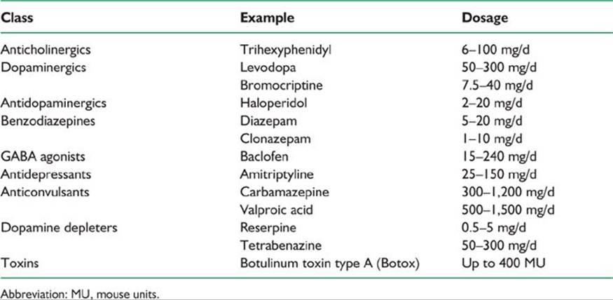 TABLE 41.3 Medications Used in the Management of Dystonia