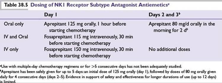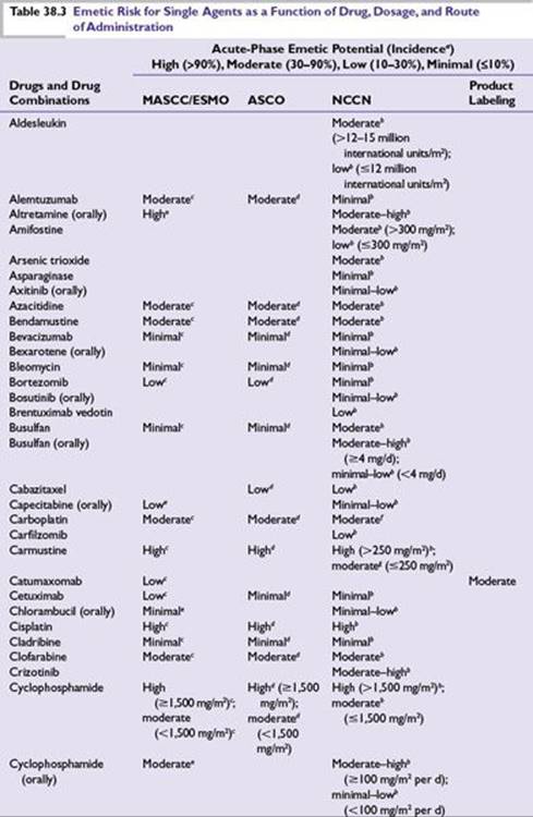 Intrinsic emetogenicity (Table 38.3) is an antineoplastic drug’s propensity for causing emetic symptoms. Drug dose or dosage is often the second most significant factor affecting emetogenic potential and the duration for which symptoms persist.