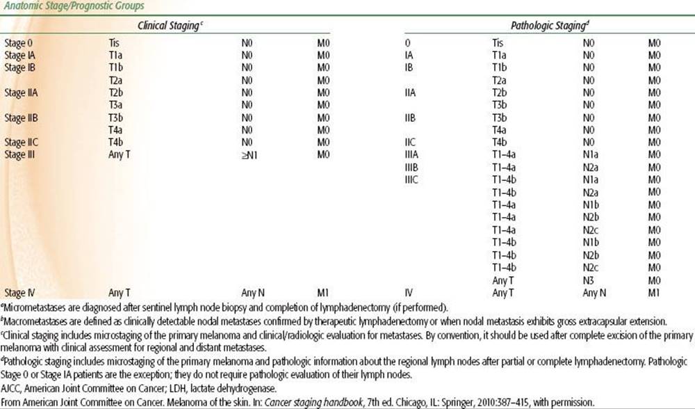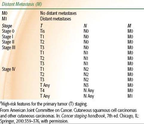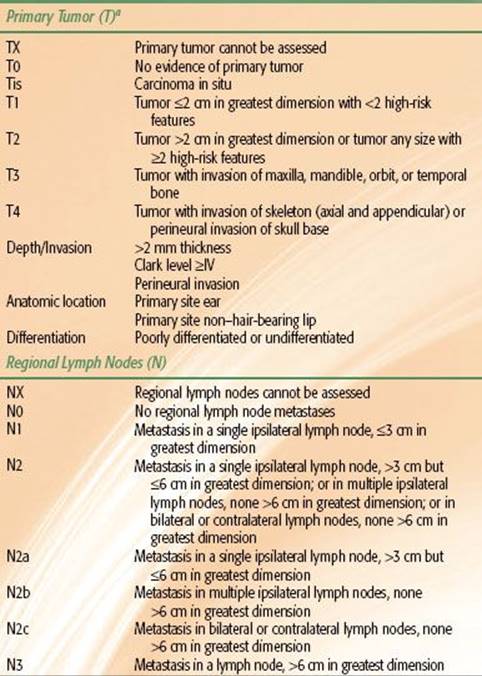 TABLE 33.2 2010 AJCC STAGING SYSTEM FOR BASAL CELL AND SQUAMOUS CELL CARCINOMAS